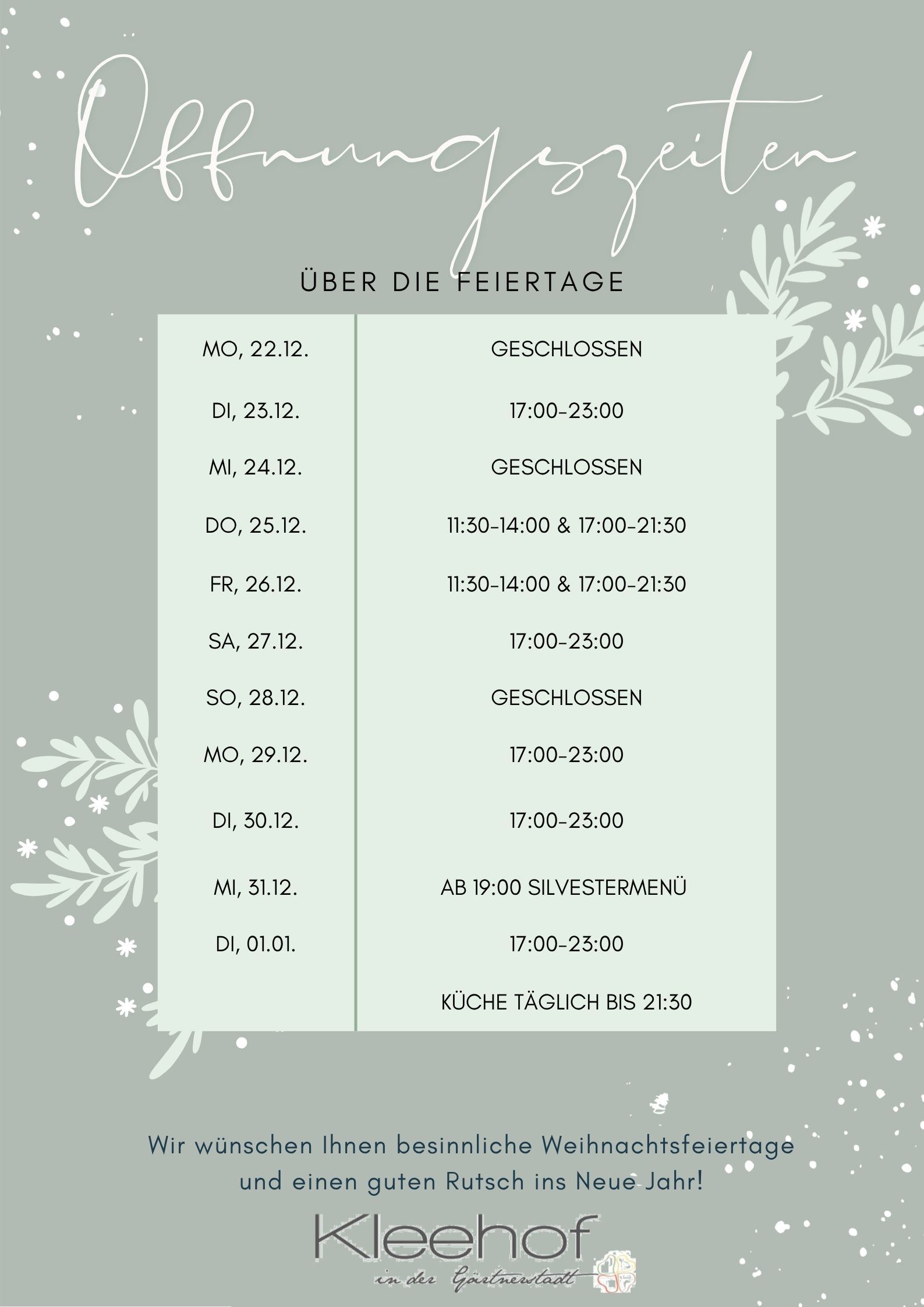 Dienstag - Samstag täglich ab 17:00 Uhr geöffnet